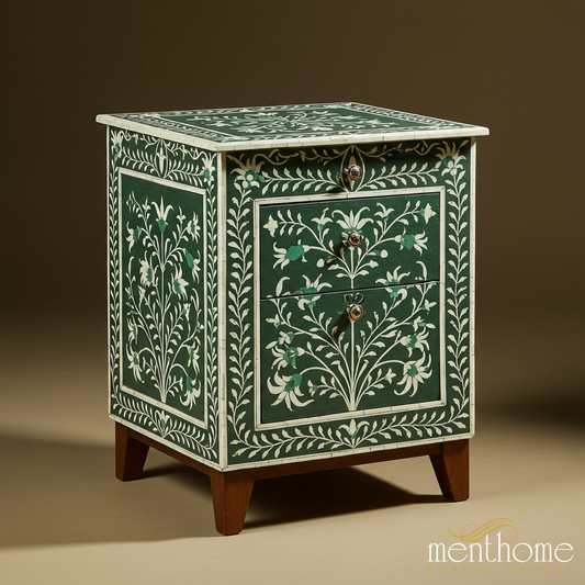 Handcrafted Bone Inlay Side Table | Luxury Handmade Bedside Table