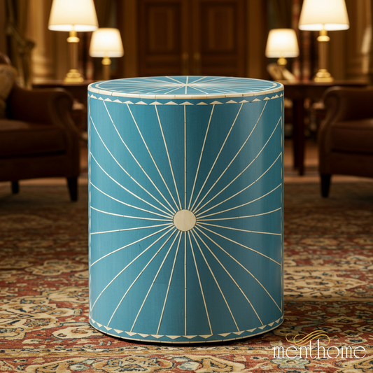 Blue Decorative Cylinder Side Table | Luxury Handmade Stool