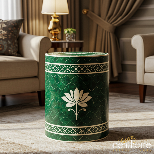 Decorative Green Lotus Patterned Side Table | Luxury Handmade Stool