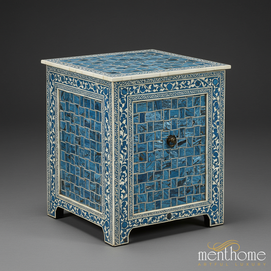 Vintage Blue Inlaid Cabinet | Luxury Handmade Side Table