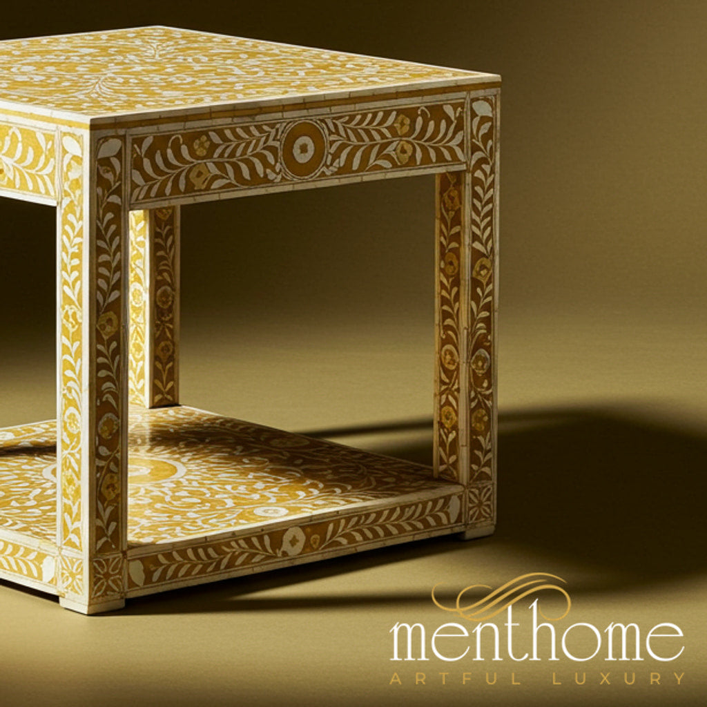 Artisan Gold Leaf Wooden Stool | Luxury Handmade Side Table