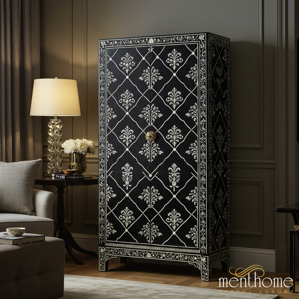 Black and White Hand-Painted Storage Cabinet | Luxury Handmade Cabinet