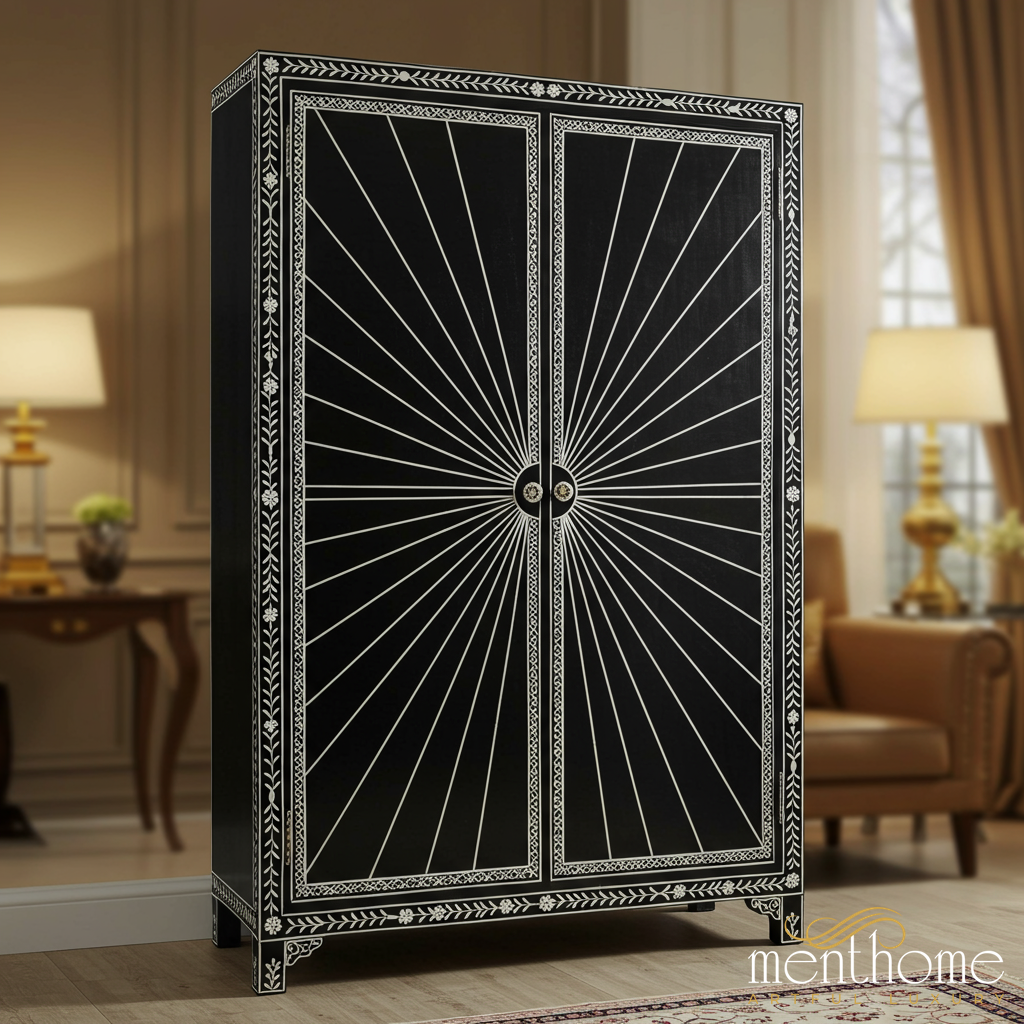 Black and White Inlay Wooden Wardrobe Cabinet | Luxury Handmade Wardrobe