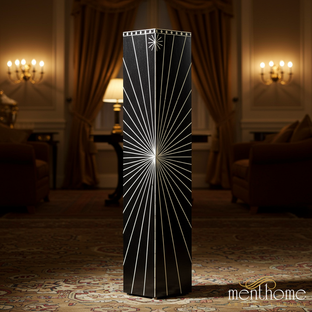 Black Decorative Floor Lamp with Starburst Pattern | Luxury Handmade Tallboy
