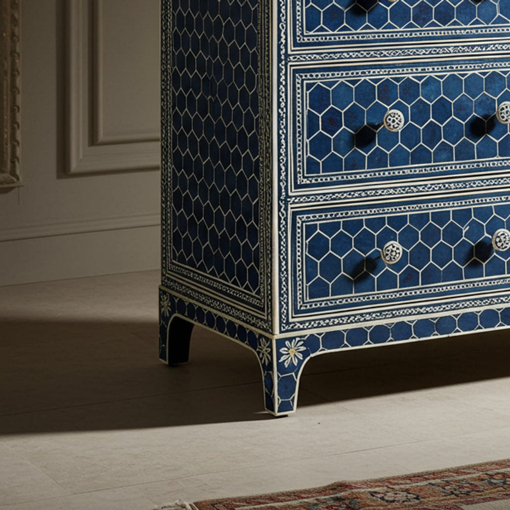 Blue Bone Inlay 4-Drawer Chest | Luxury Handmade Chest of Drawer