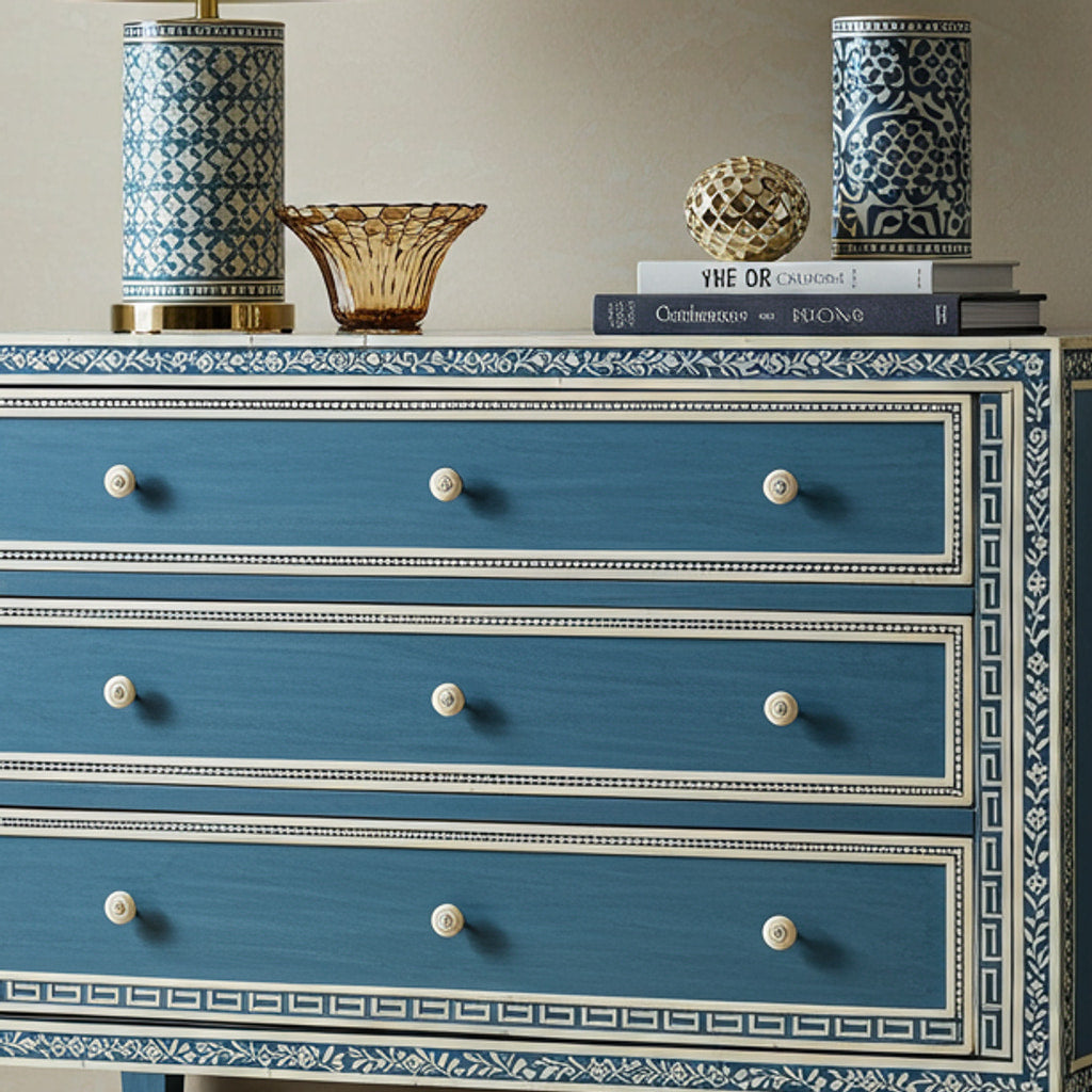 Blue Decorative Three-Drawer Chest | Luxury Handmade Chest of Drawer