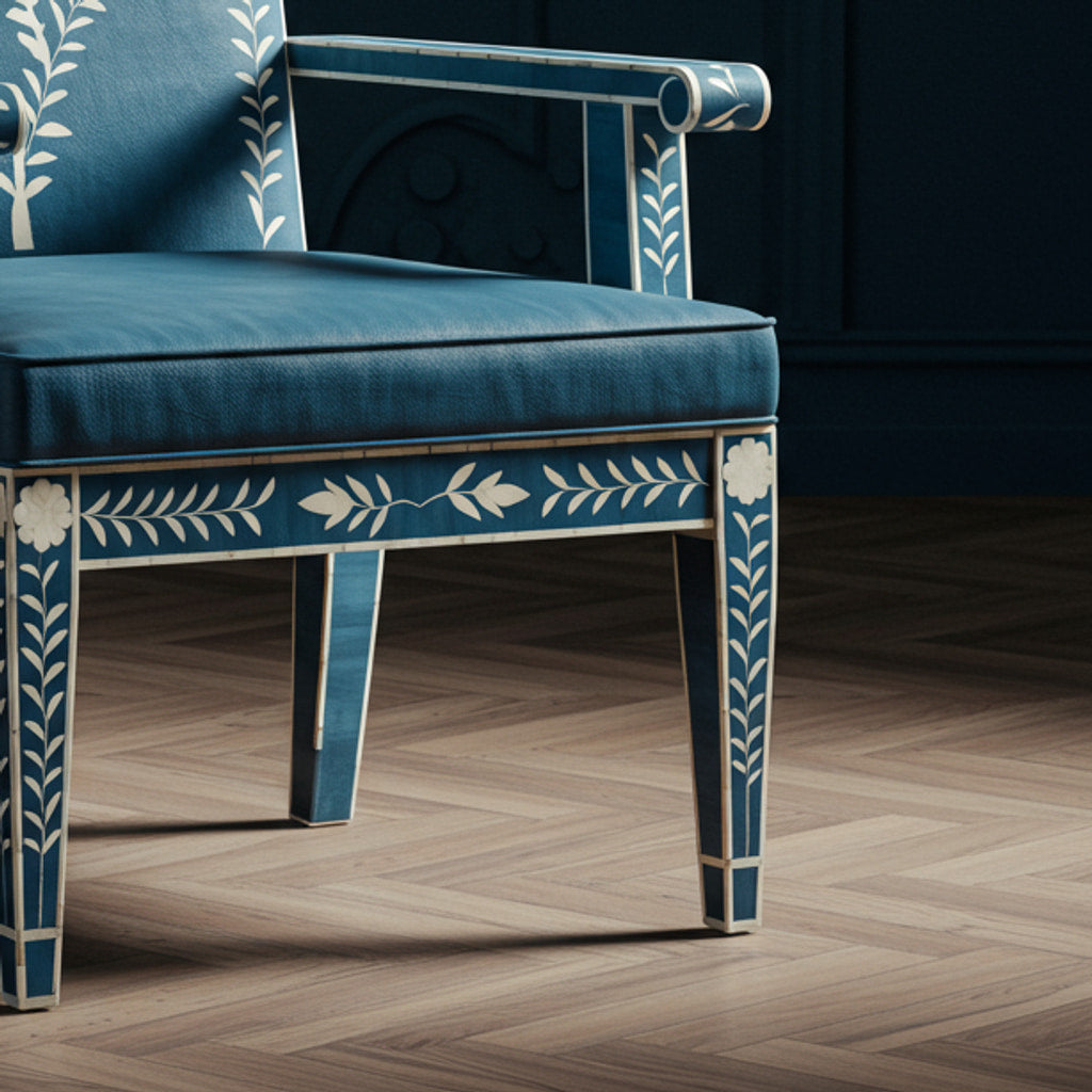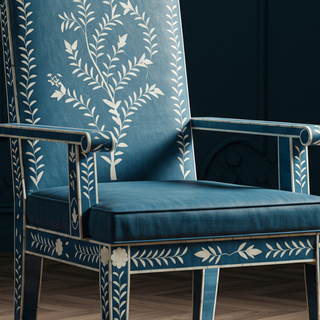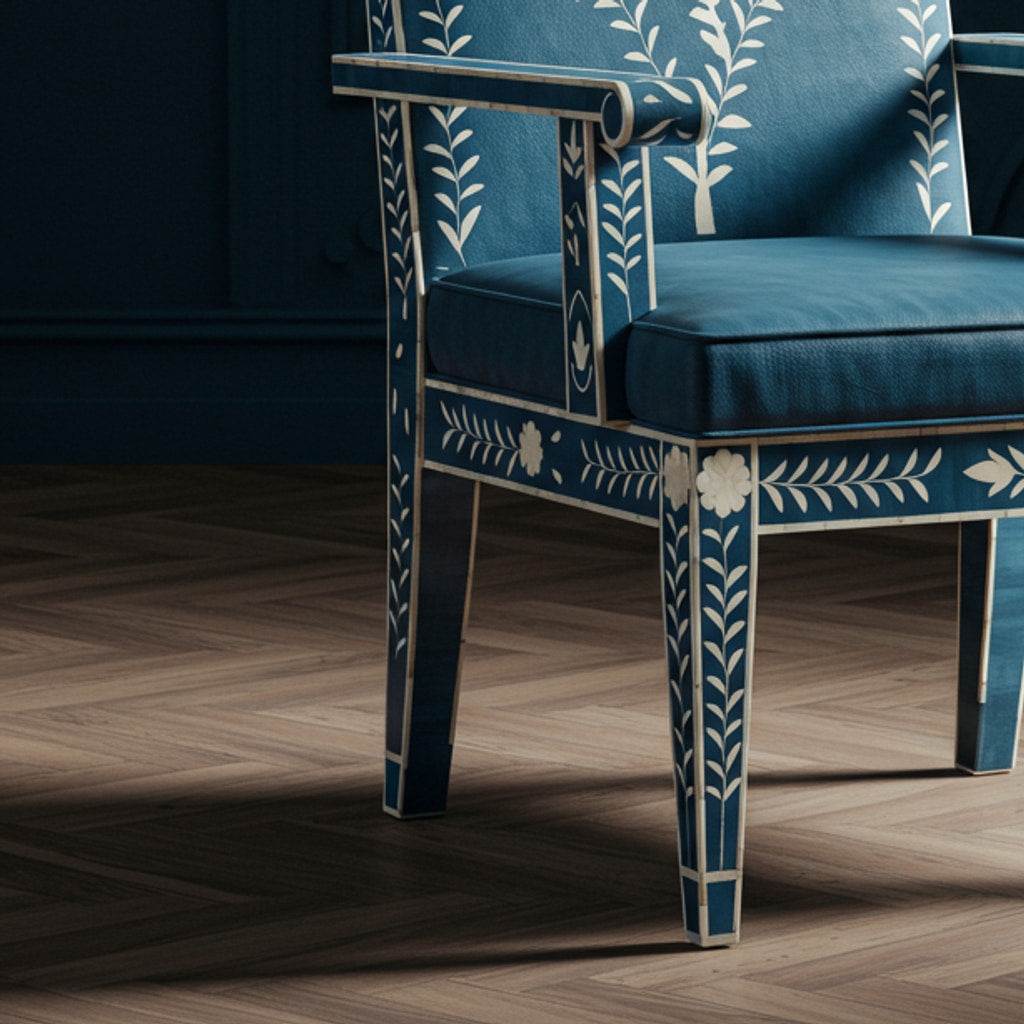 Blue Floral Inlay Armchair | Luxury Handmade Chair
