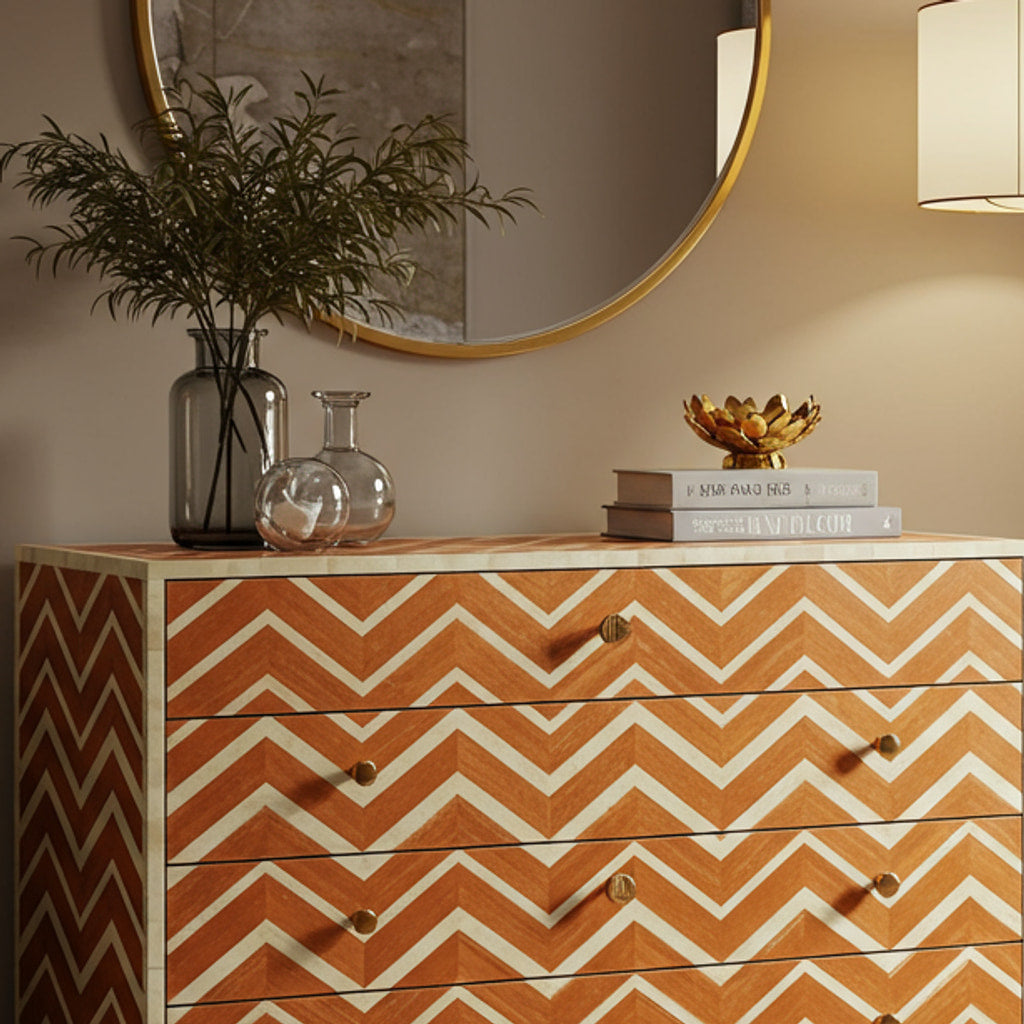 Chevron Pattern Wooden Chest of Drawers | Luxury Handmade Dresser