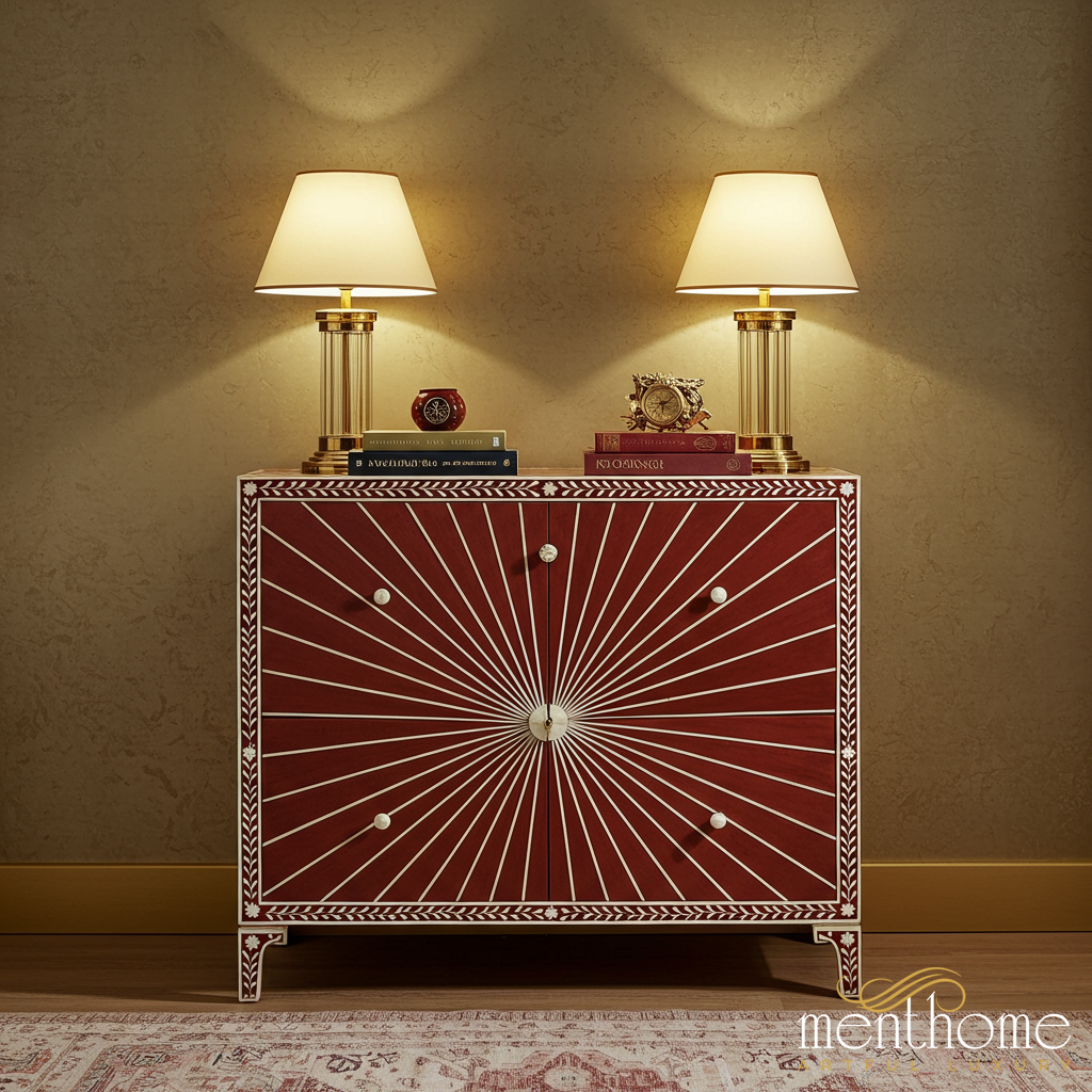 Decorative Inlaid Wooden Cabinet with Lamps | Luxury Handmade Dresser