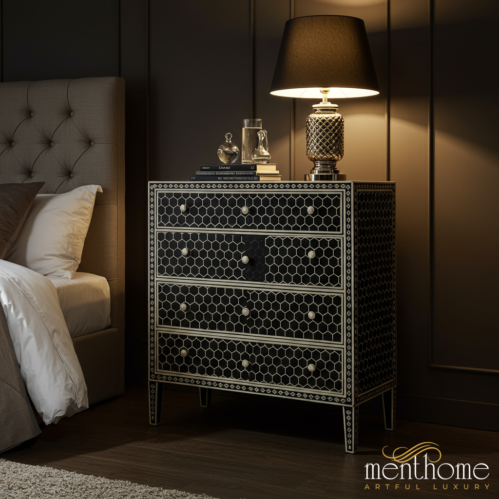Elegant Black and White Patterned Chest of Drawers | Luxury Handmade Chest of Drawer