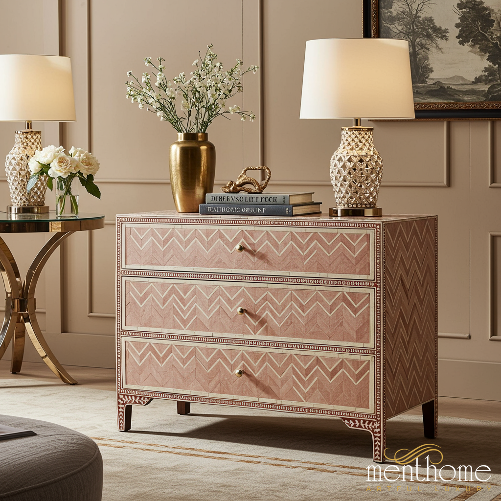 Elegant Chevron Patterned Three-Drawer Dresser | Luxury Handmade Chest of Drawer