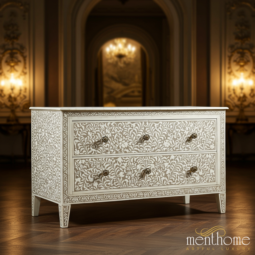 Elegant Handcrafted Bone Inlay Chest of Drawers | Luxury Handmade Dresser