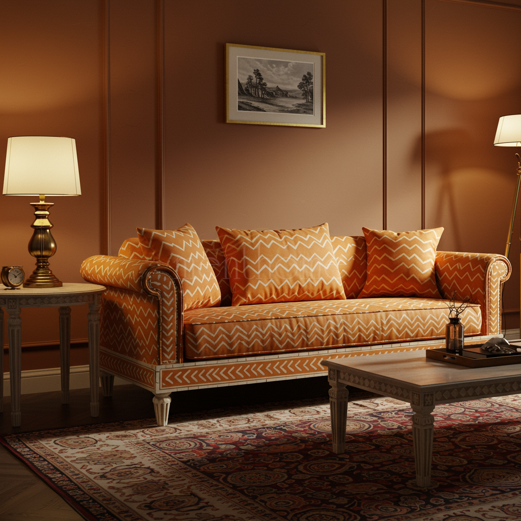 Elegant Inlay Pattern Orange Sofa | Luxury Handmade Sofa