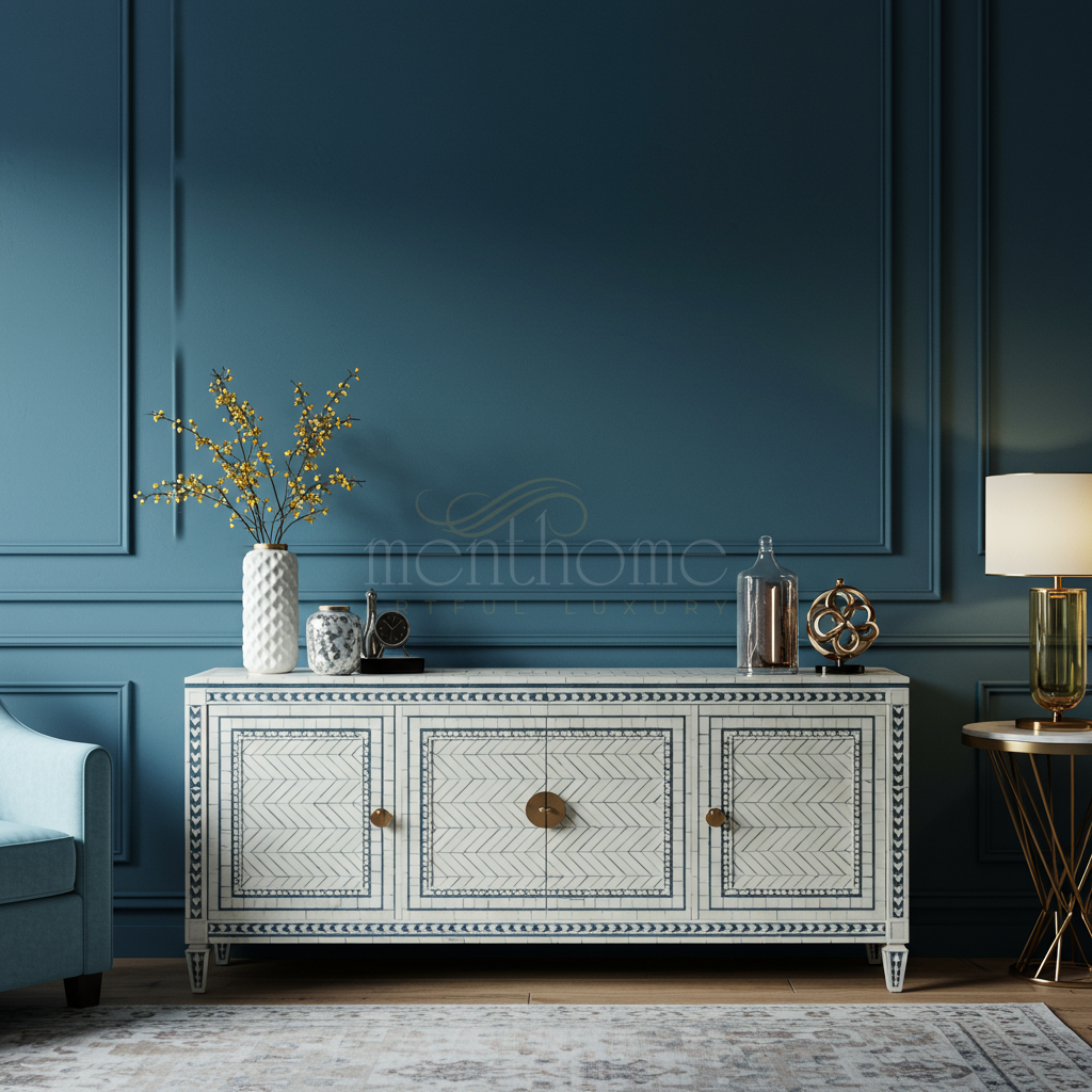 Elegant Inlay TV Cabinet with Geometric Pattern | Luxury Handmade TV Cabinet