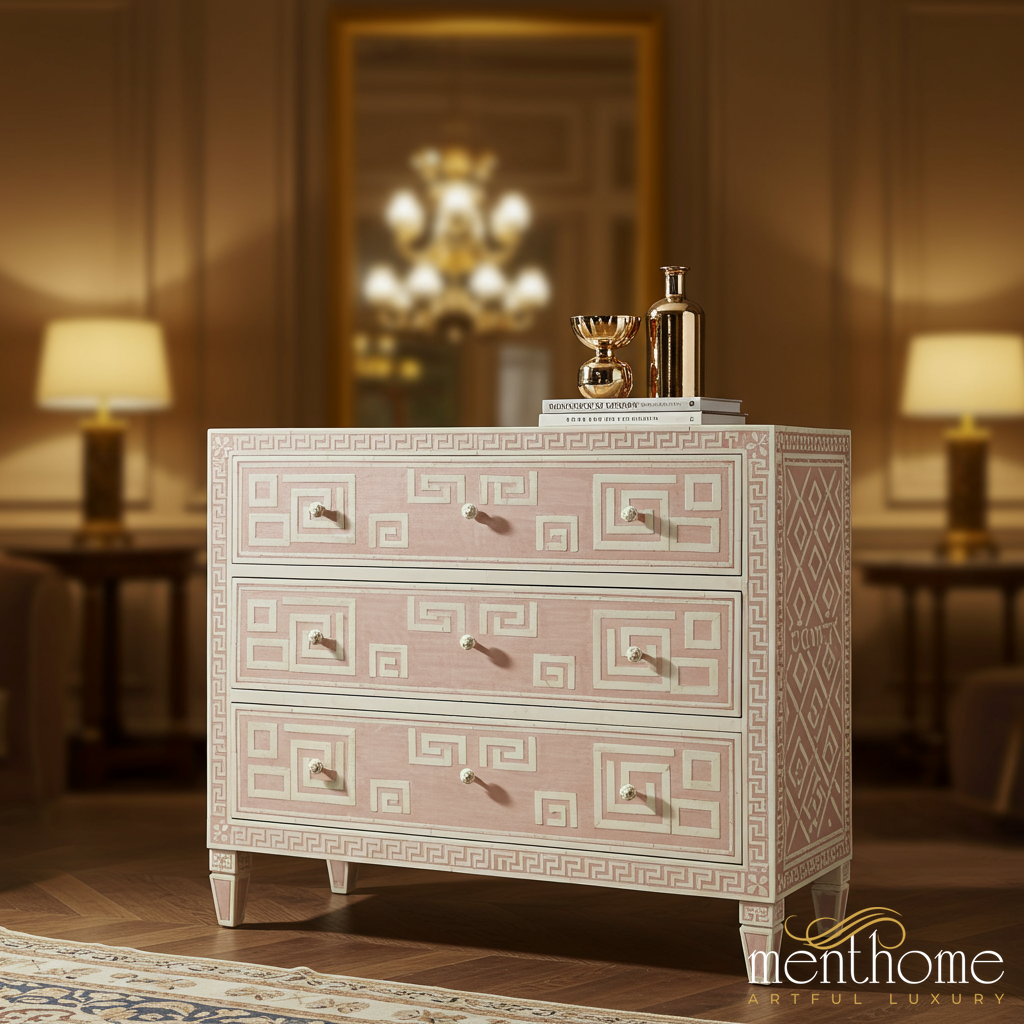 Elegant Pink Geometric Patterned Chest of Drawers | Luxury Handmade Chest of Drawer