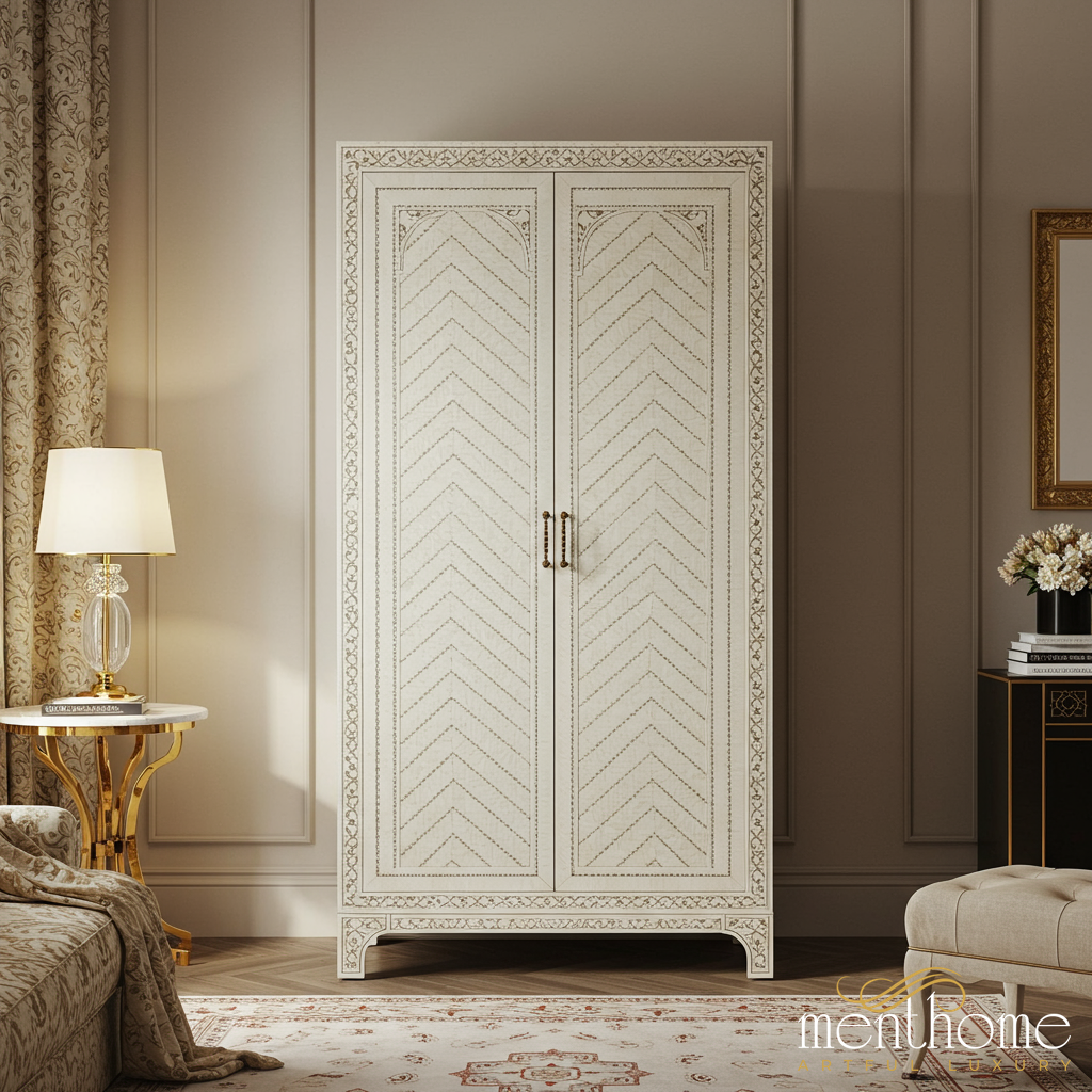 Elegant White Decorative Wardrobe Cabinet | Luxury Handmade Wardrobe