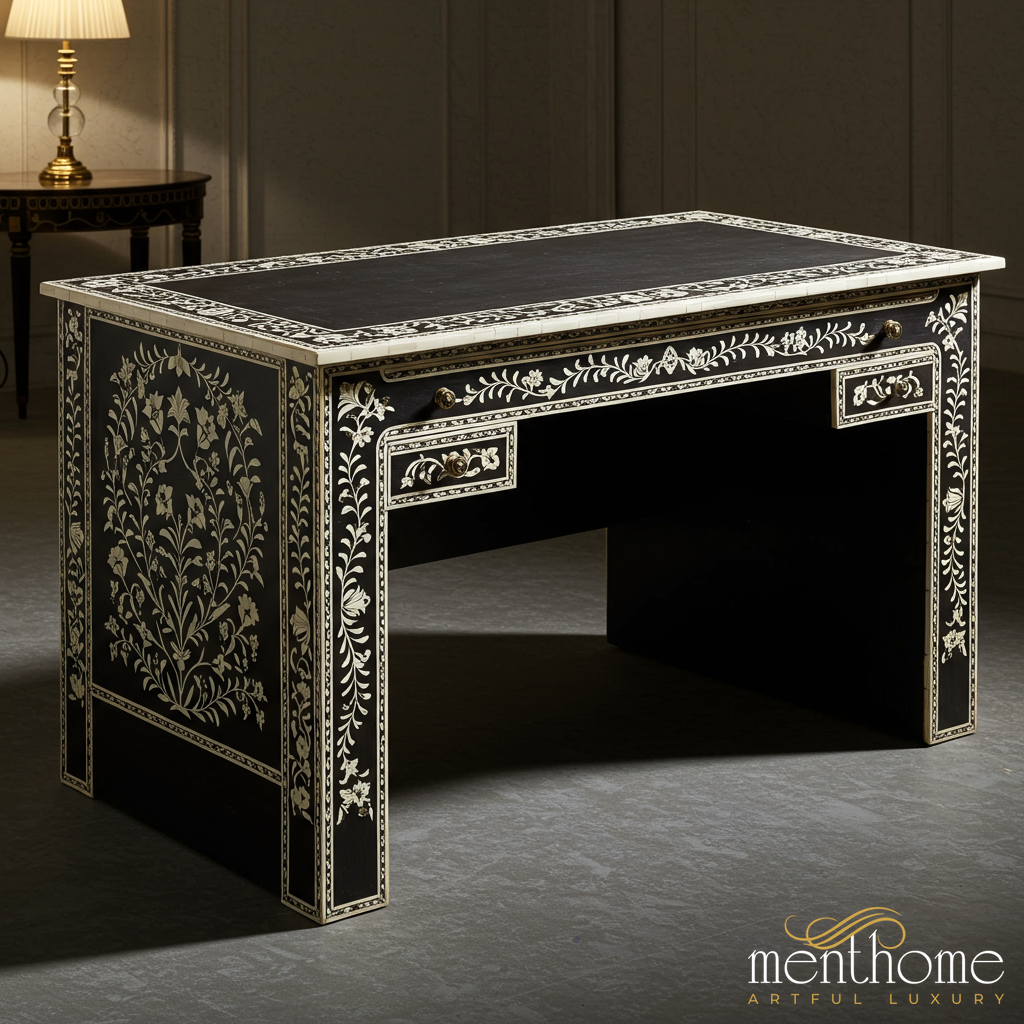 Elegant Wooden Office Desk with Chevron Inlay | Luxury Handmade Desk