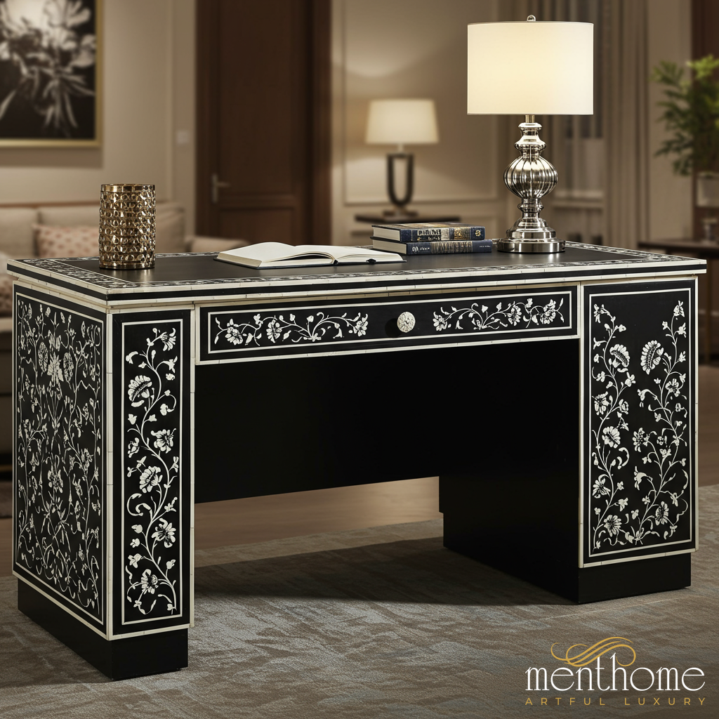 Elegant Wooden Office Desk with Gold Detailing | Luxury Handmade Desk