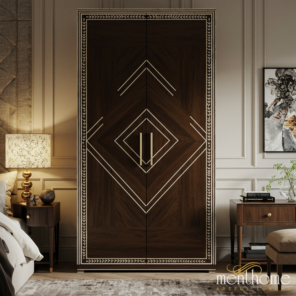 Elegant Wooden Wardrobe with Geometric Inlay Design | Luxury Handmade Wardrobe