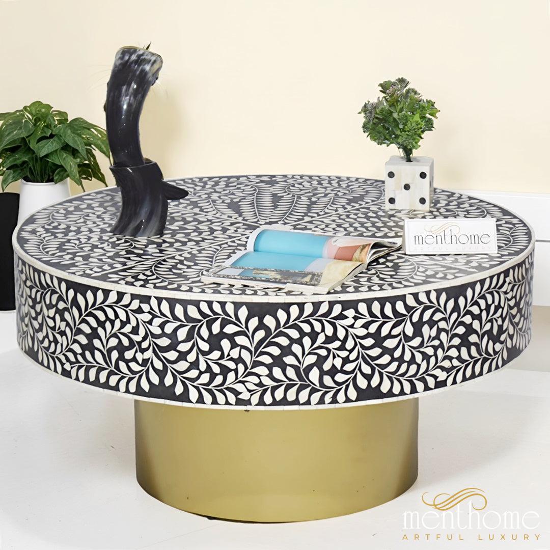 Floral Coffee Table Bone Inlay with Brass Leg | Luxury Handmade Coffee Table