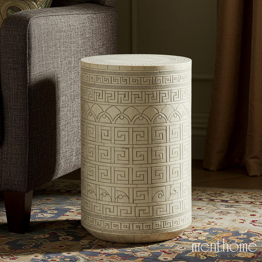 Geometric Pattern Inlay Stool | Luxury Handmade Side Table