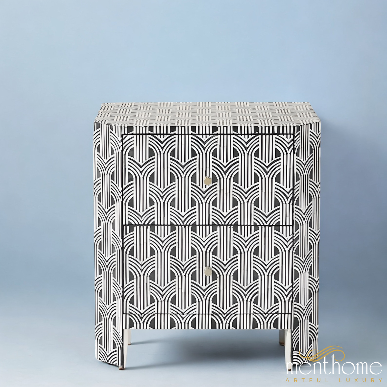 Geometrical Bone Inlay 2 Drawer Nightstand | Luxury Handmade Bedside Table