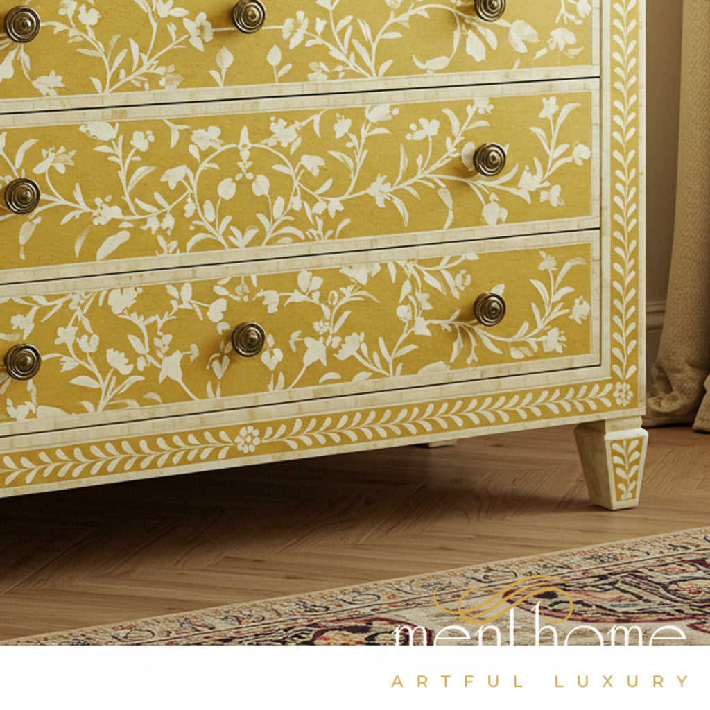 Hand-Painted Floral Wood Dresser with Brass Hardware | Luxury Handmade Dresser