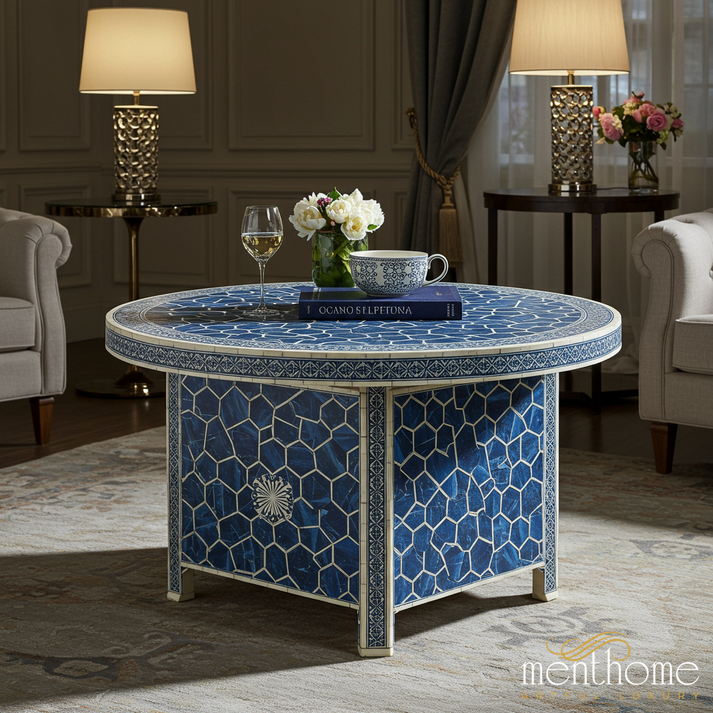 Handcrafted Blue Mosaic Round Coffee Table | Luxury Handmade Coffee Table