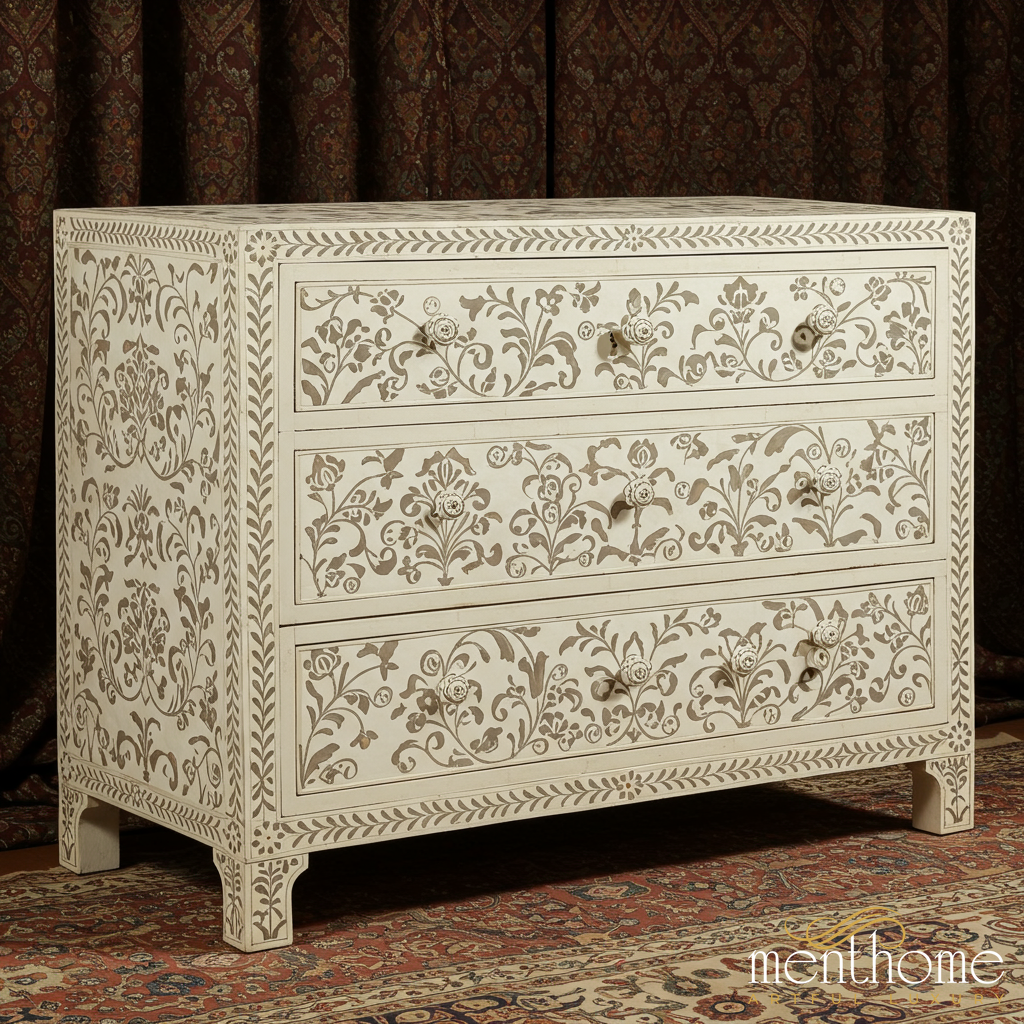 Handcrafted Bone Inlay Floral Chest of Drawers | Luxury Handmade Chest of Drawer