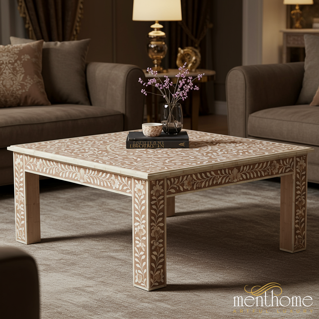 Handcrafted Bone Inlay Wooden Coffee Table | Luxury Handmade Coffee Table