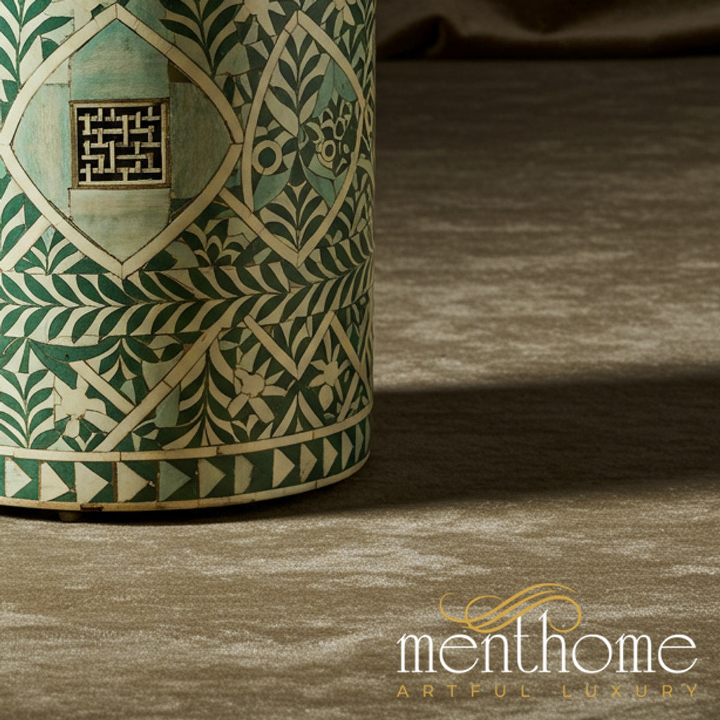 Handcrafted Decorative Green and White Bone Inlay Storage Box | Luxury Handmade Stool