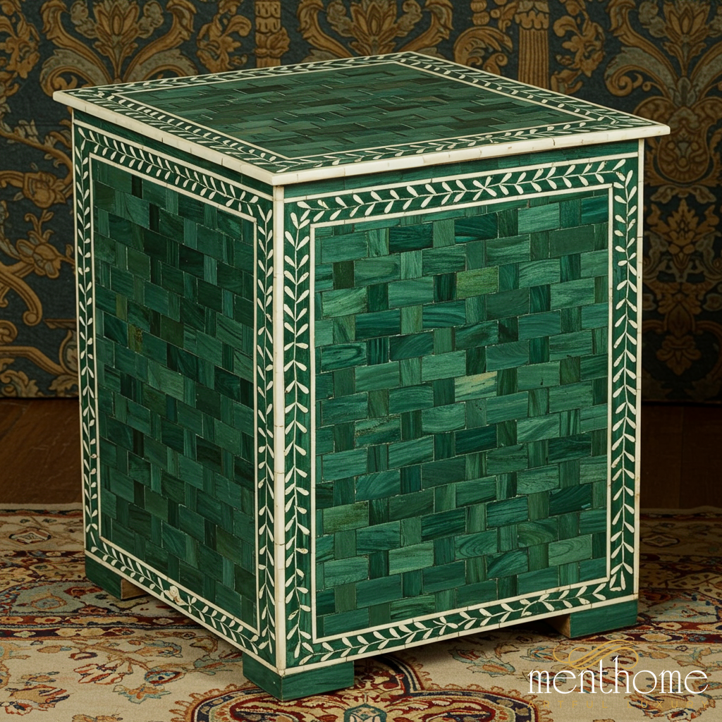 Handcrafted Emerald Green Inlaid Side Table | Luxury Handmade Side Table