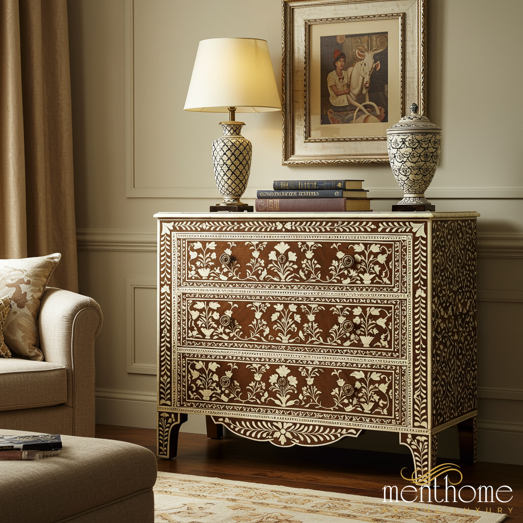 Handcrafted Floral Inlaid Wooden Chest of Drawers | Luxury Handmade Dresser