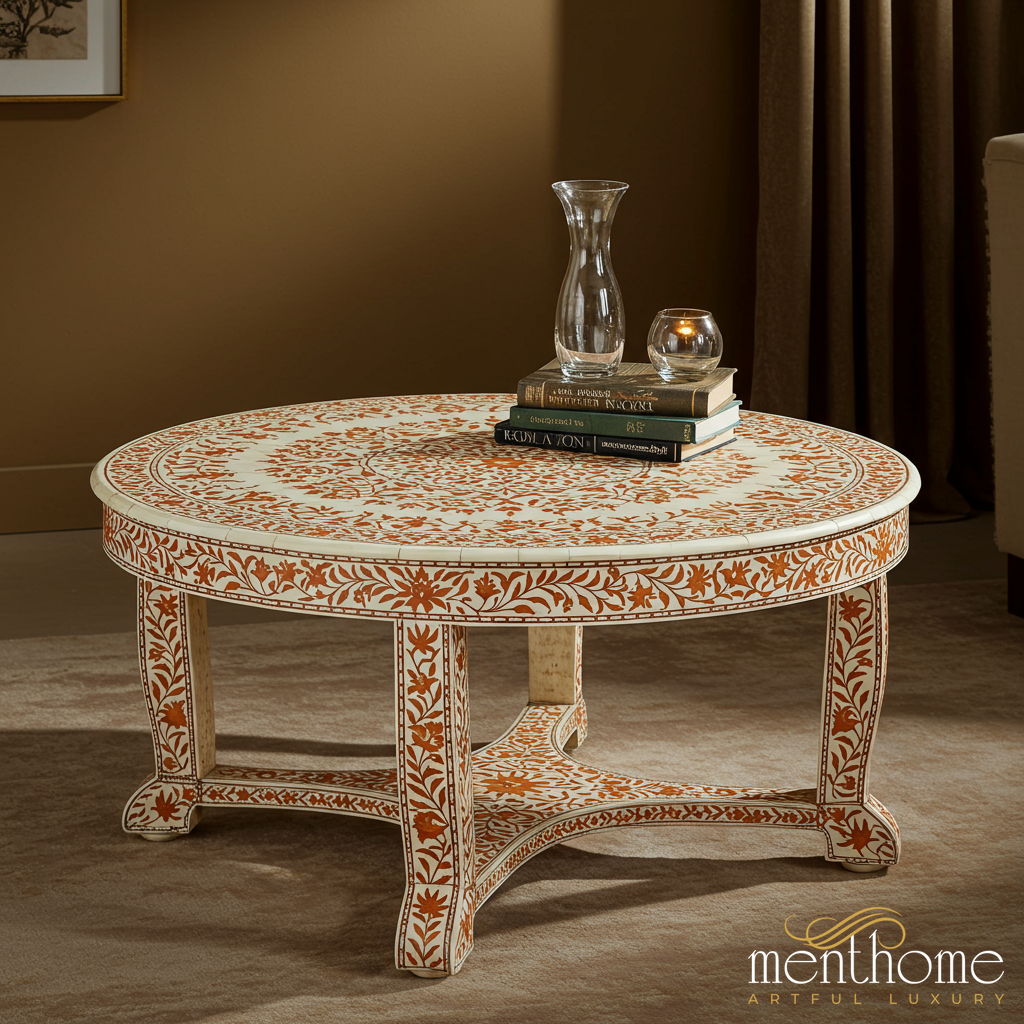 Handcrafted Floral Inlay Round Coffee Table | Luxury Handmade Coffee Table