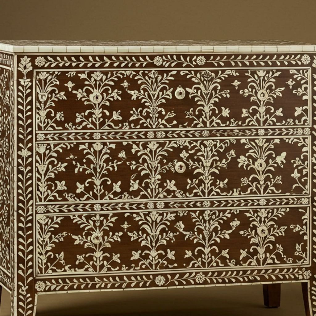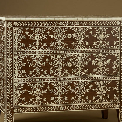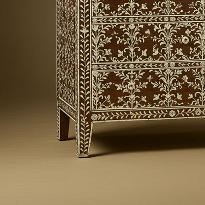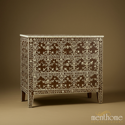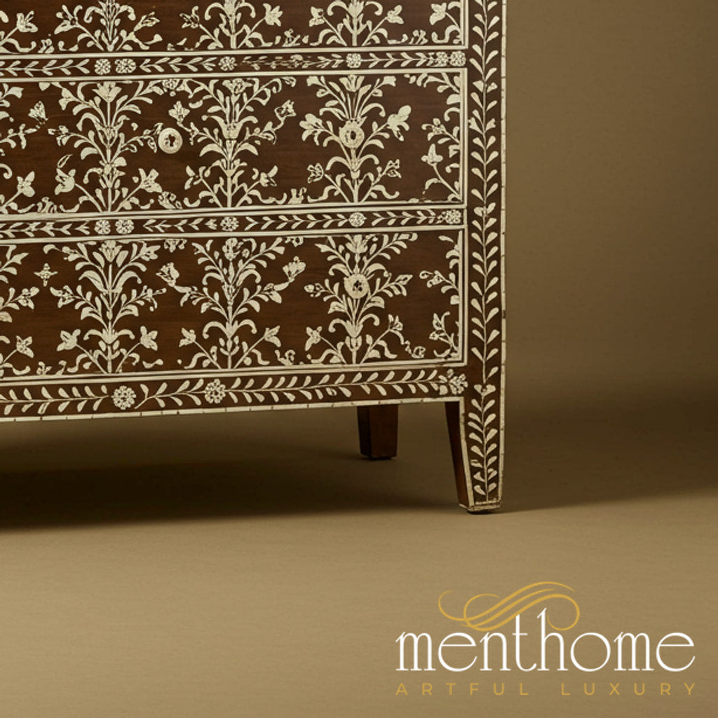 Handcrafted Floral Inlay Wooden Chest of Drawers | Luxury Handmade Chest of Drawer