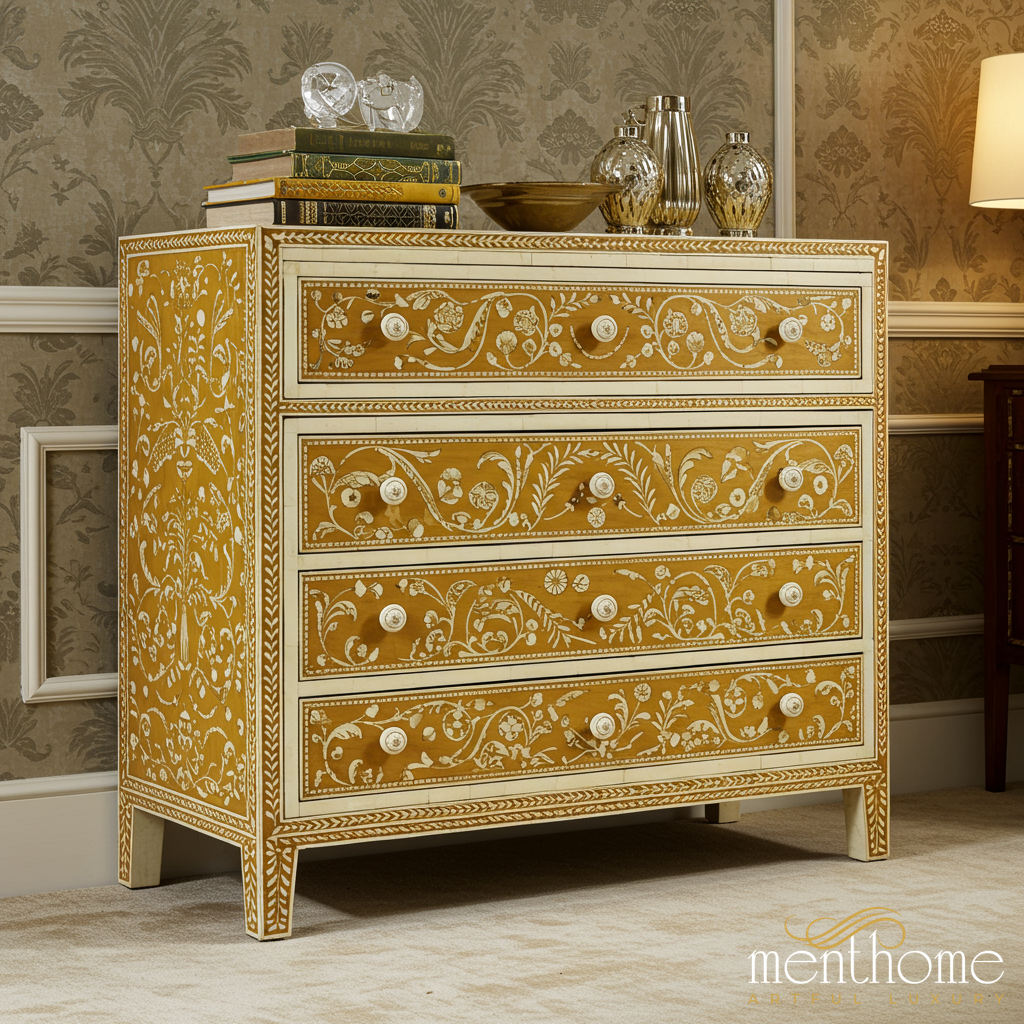 Handcrafted Floral Inlay Wooden Chest of Drawers | Luxury Handmade Chest of Drawer