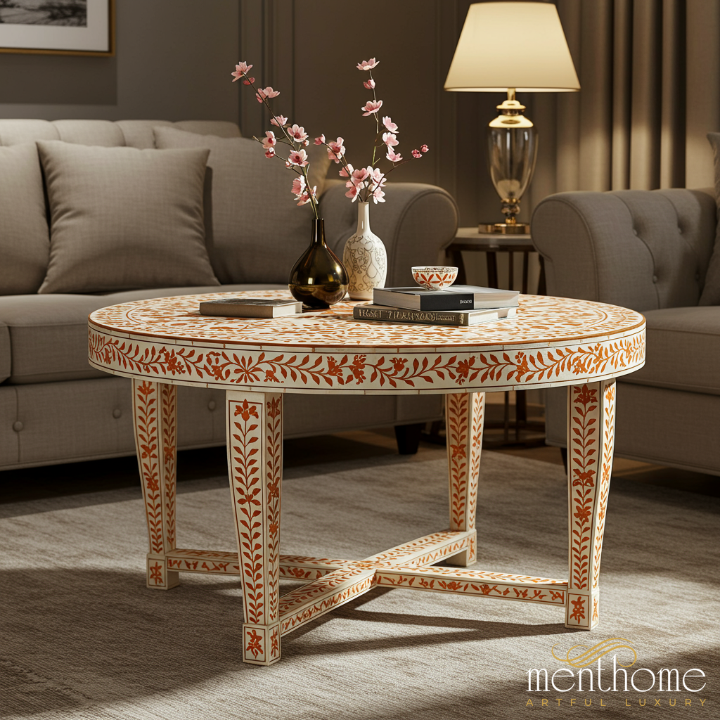 Handcrafted Floral Round Coffee Table | Luxury Handmade Coffee Table