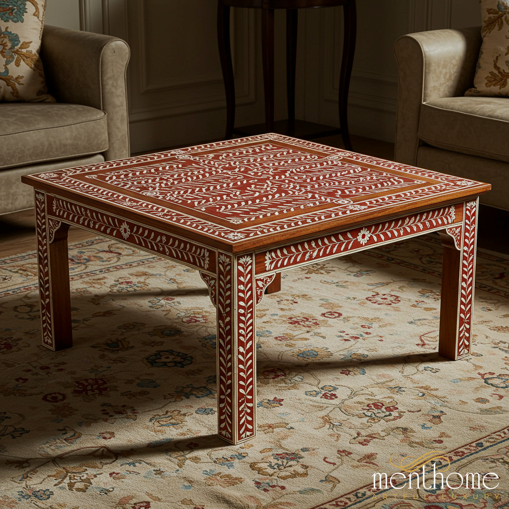 Handcrafted Inlay Wooden Coffee Table | Luxury Handmade Coffee Table