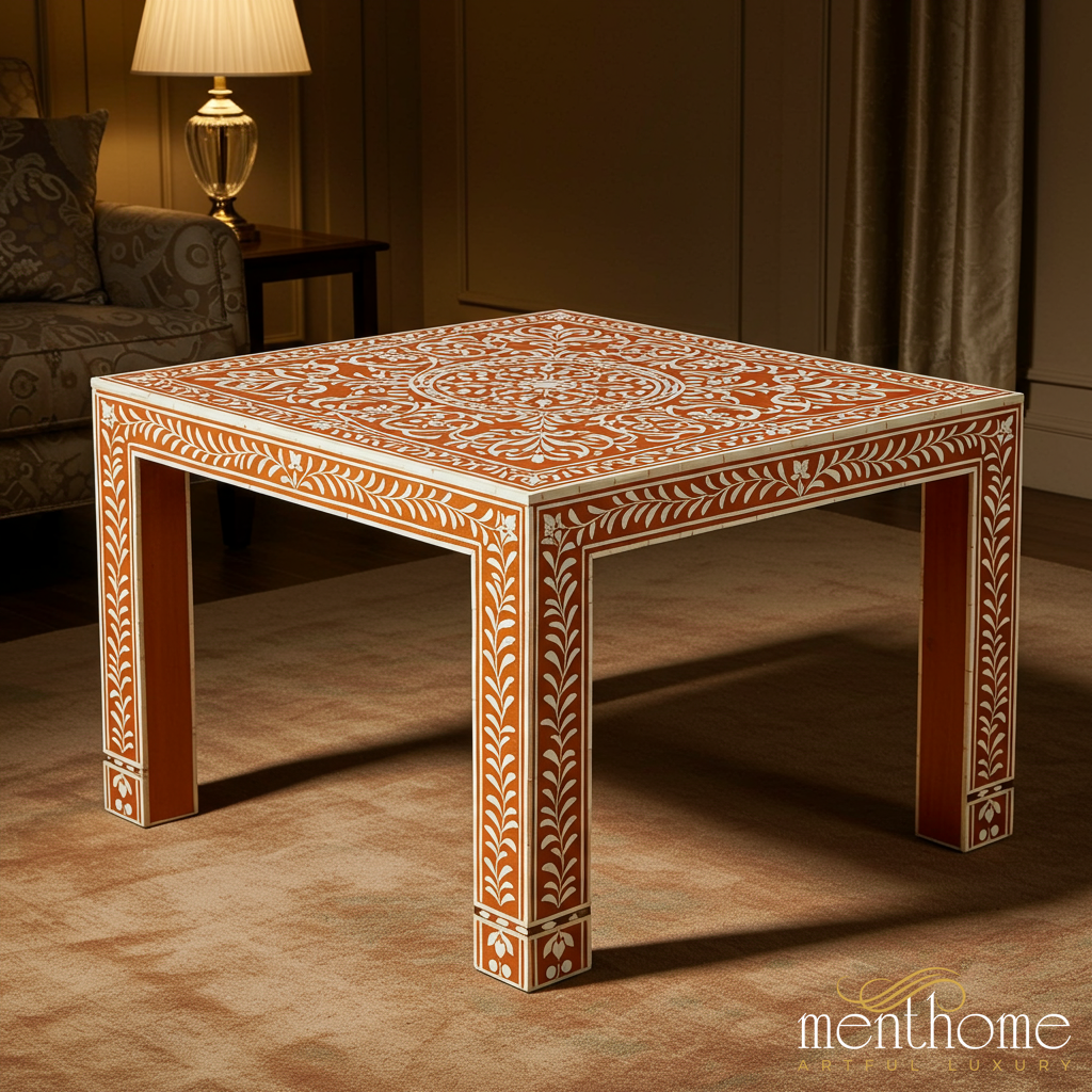 Handcrafted Inlay Wooden Coffee Table with Floral Design | Luxury Handmade Coffee Table