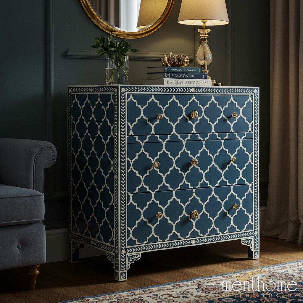 Handcrafted Moroccan Style Blue Bone Inlay Chest of Drawers | Luxury Handmade Dresser