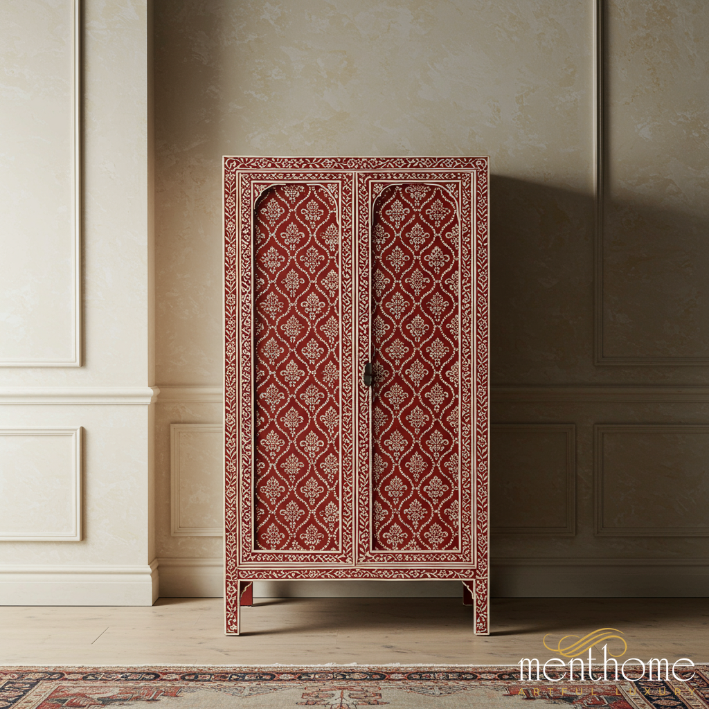 Handcrafted Red Decorative Wooden Cabinet | Luxury Handmade Cabinet