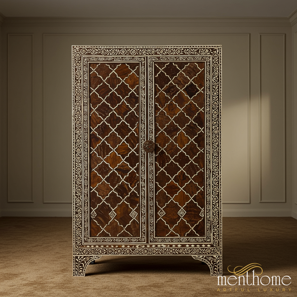 Handcrafted Wooden Cabinet with Bone Inlay | Luxury Handmade Cabinet