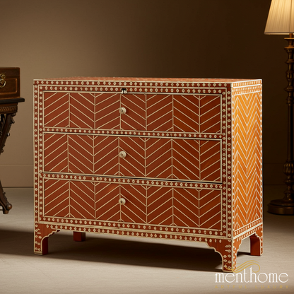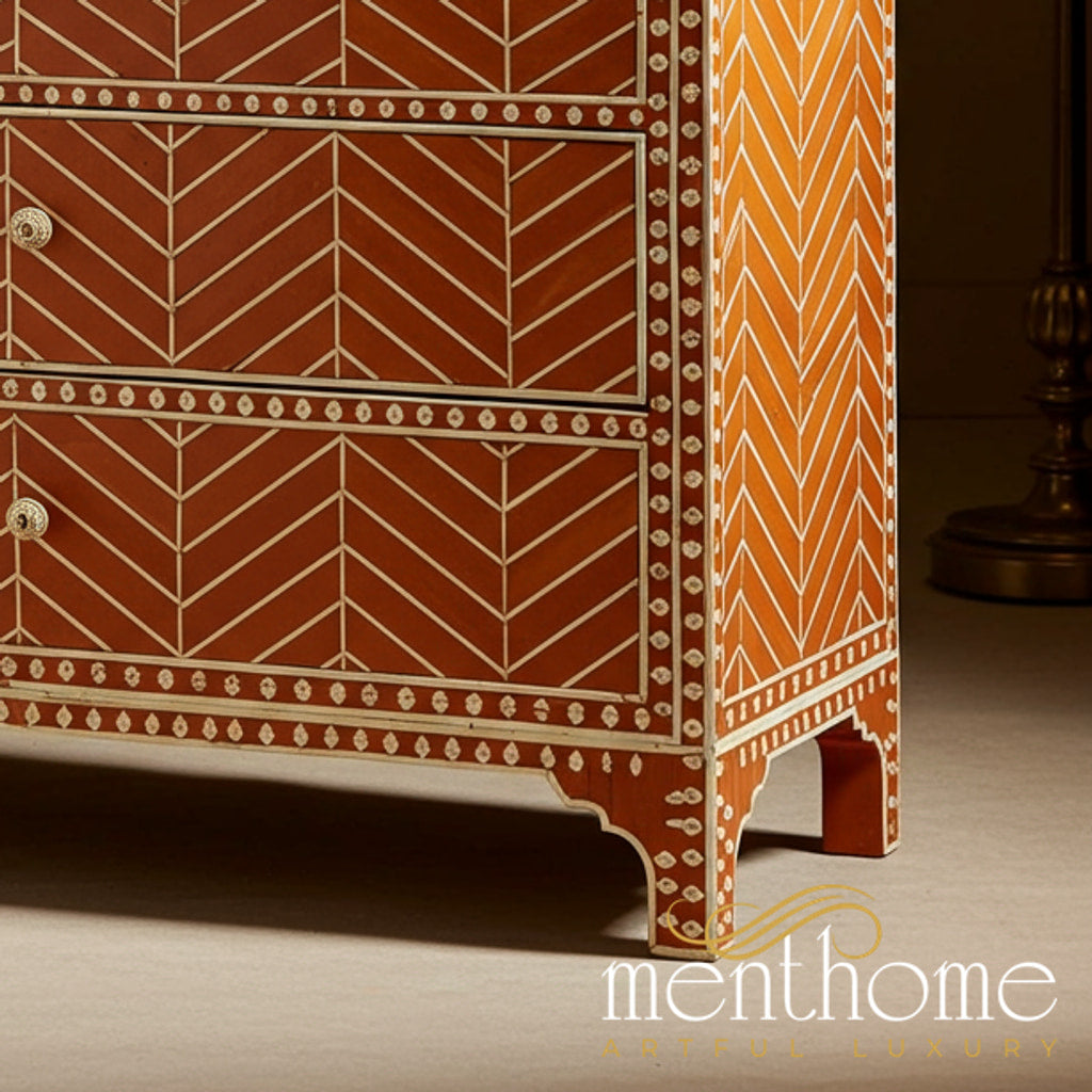 Handcrafted Wooden Chest of Drawers with Bone Inlay | Luxury Handmade Chest of Drawer