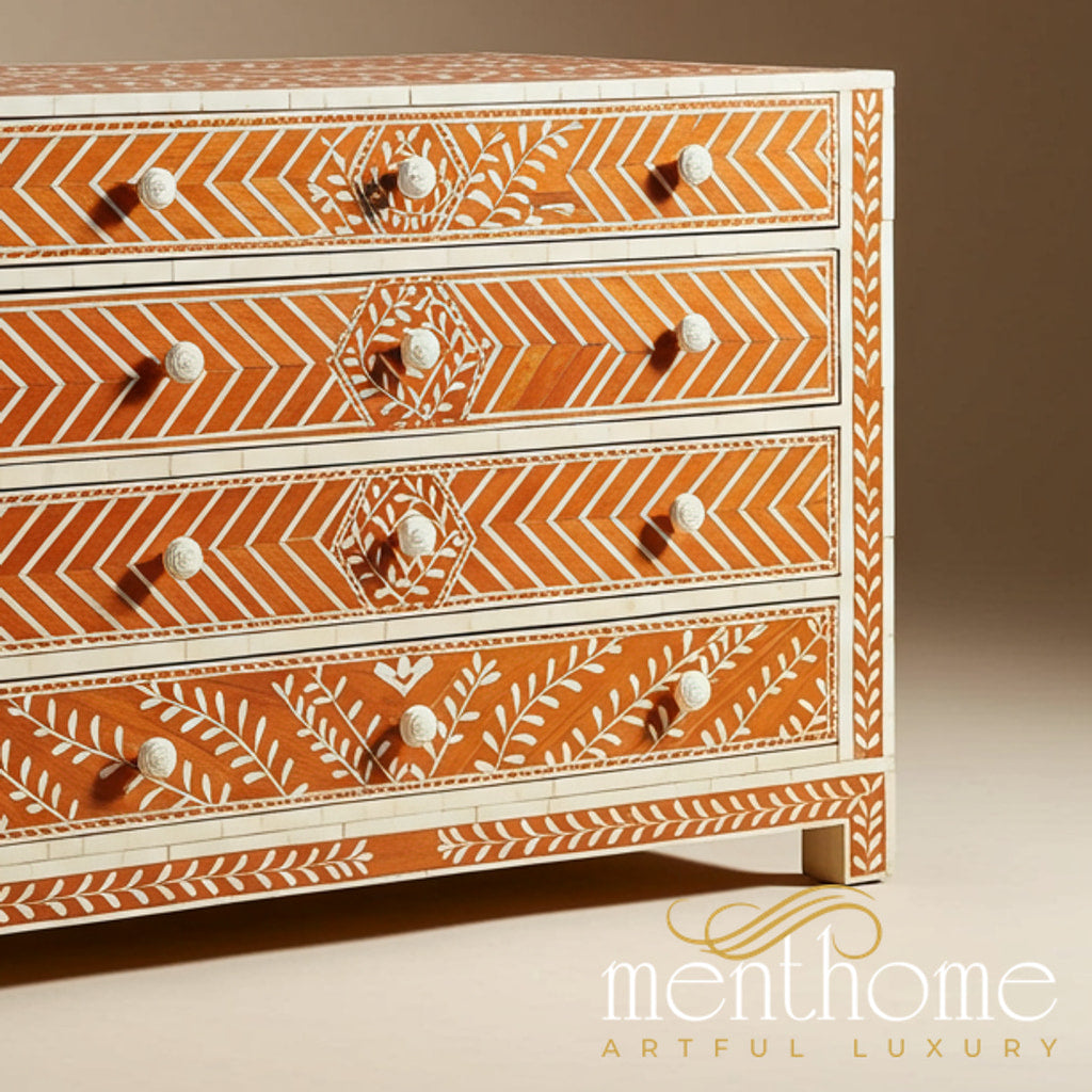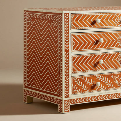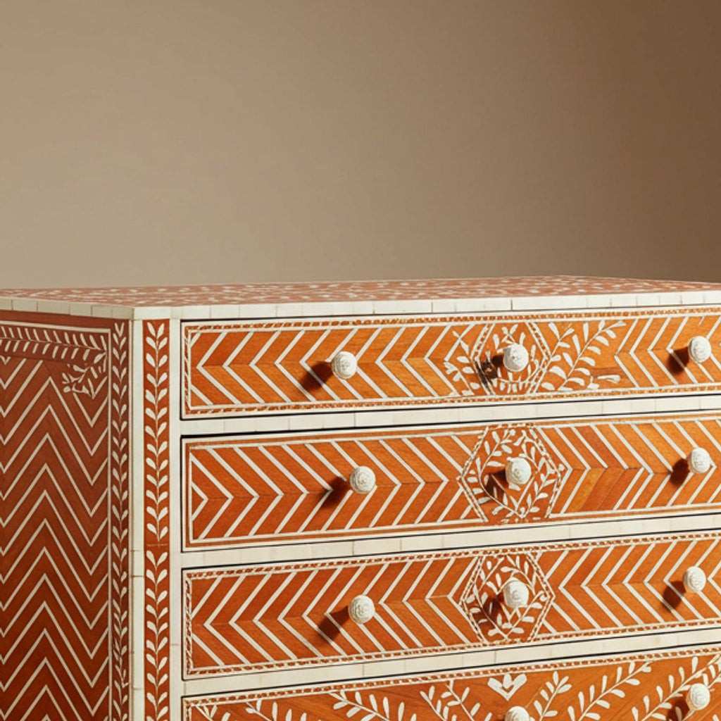 Handcrafted Wooden Chest of Drawers with Painted Chevron Design | Luxury Handmade Chest of Drawer