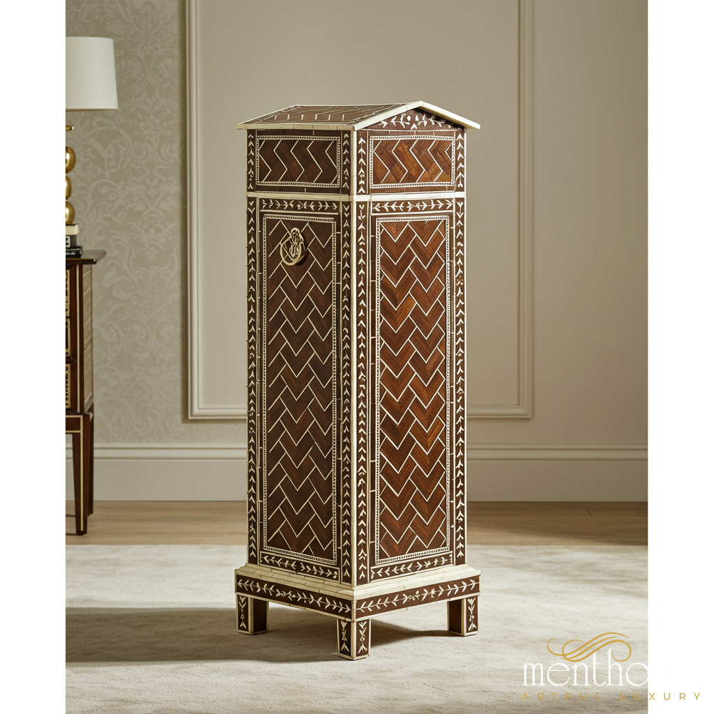 Handcrafted Wooden Tall Cabinet with Inlay Design | Luxury Handmade Tallboy