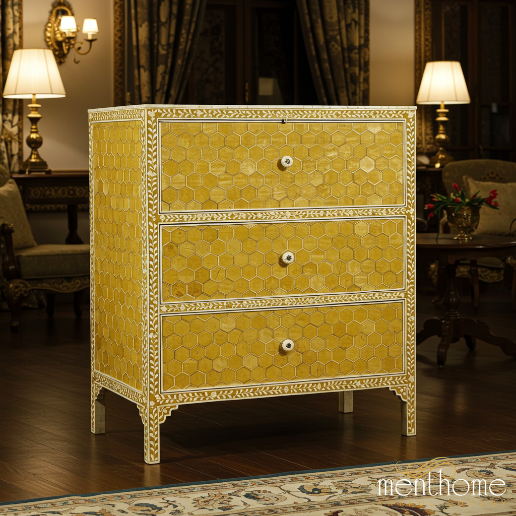 Handcrafted Yellow Honeycomb Pattern Chest of Drawers | Luxury Handmade Chest of Drawer