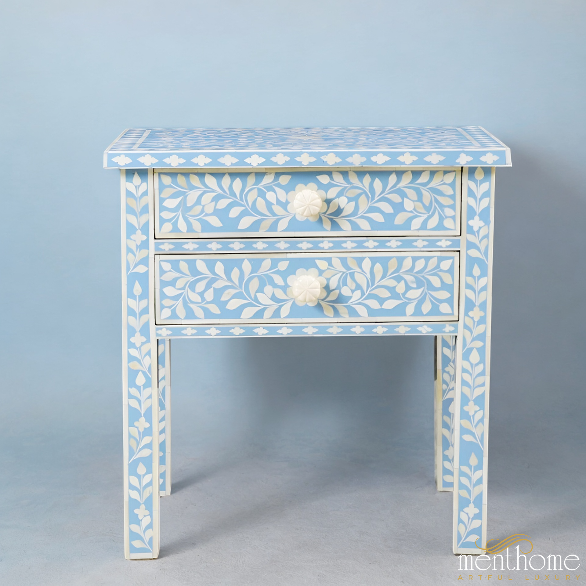 Handmade Blue Bone Inlay Bedside Table Wooden Table | Luxury Handmade Bedside Table