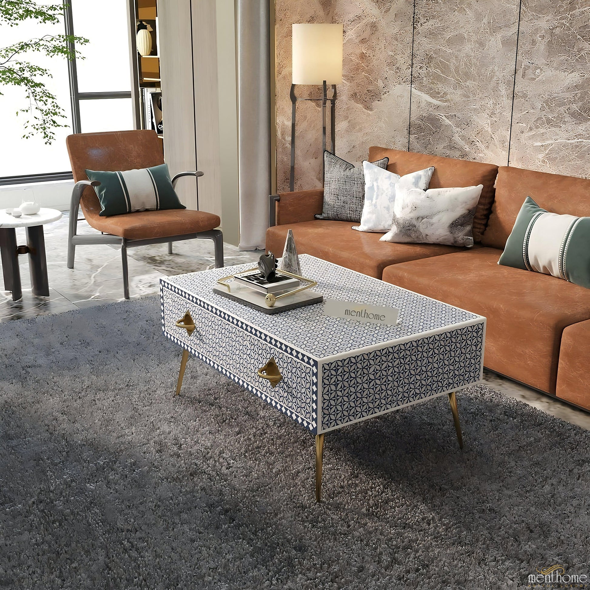 Handmade Bone Inlay One Drawer Coffee Table Furniture | Luxury Handmade Coffee Table