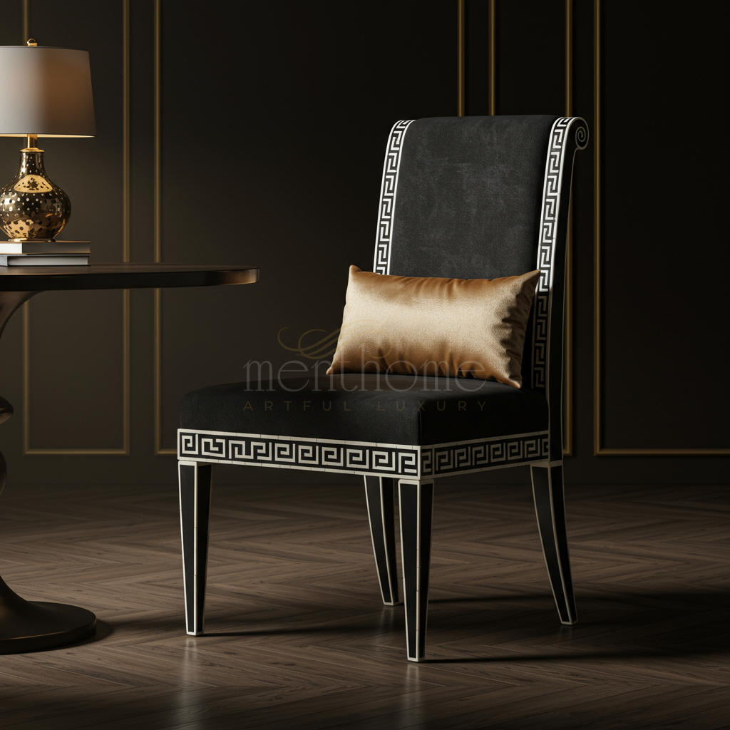 Inlay Chair with Elegant Greek Key Detailing | Luxury Handmade Chair