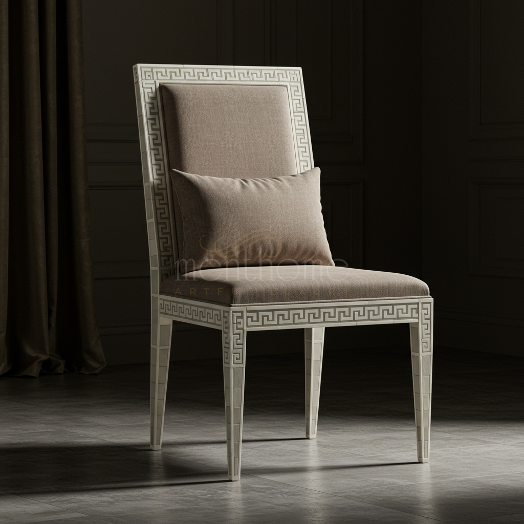 Inlay Chair with Geometric Pattern and Plush Cushion | Luxury Handmade Chair